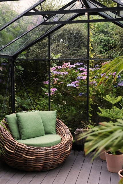 Ook praktisch, in de winter kun je er potplanten en kruiden tijdelijk beschut zetten. En eerlijk is eerlijk, een glazen broeikas met dauw op de ruiten is in de herfst toch gewoon prachtig om te zien? Zeker met een houten werkbankje en een paar potten met rozemarijn en tijm erin. Het voelt als een klein stukje buitenleven dat zelfs of koude dagen inspireert. Helemaal in de natuurlijke stijl, i love it!