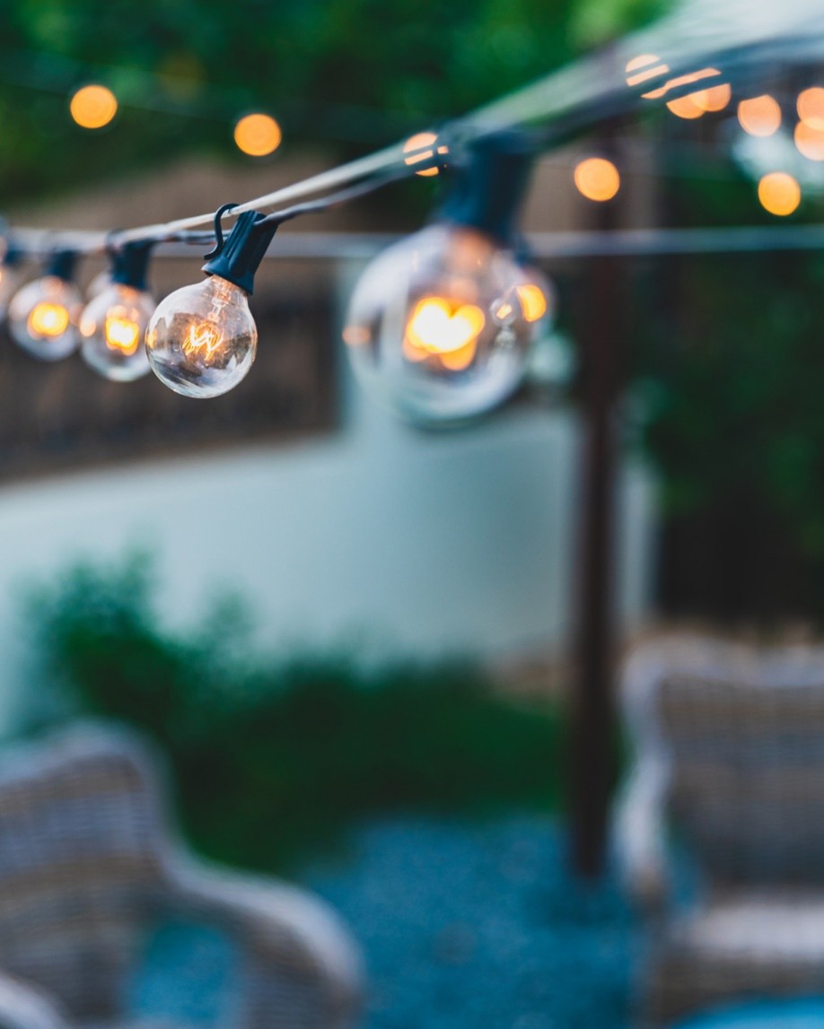Kies voor lantaarns, kaarsen of lichtsnoeren voor een knusse sfeer.