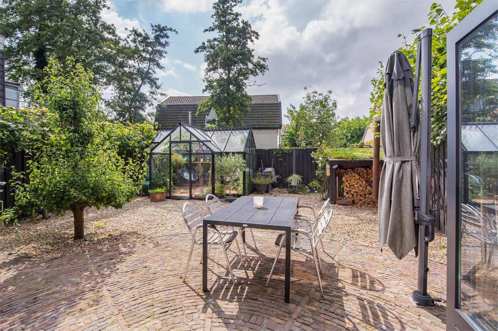 Vanuit de woonkeuken kun je de ruime inpandige berging (28m2) bereiken en via een deur de tuin. De zonnige op de zuidwest gelegen tuin (98m2) is ook bereikbaar via een poort aan de achterzijde van de tuin. In de tuin tref je een sfeervolle orangerie aan waar je groente en fruit kunt laten groeien. Je kunt hier natuurlijk ook heerlijk zitten en genieten van de kleine dingen. Loop terug naar de woonkeuken en vervolg je weg via de luie trap naar de 1e verdieping.