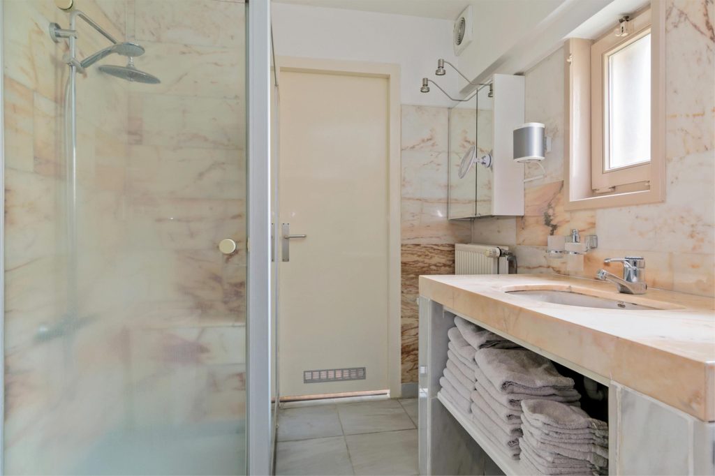 Het woonhuis met schitterende woonkamer met een 4 meter hoog gebogen plafond, ruime eetkamer/keuken (Siematic) met moderne inbouwapparatuur en toegang naar besloten binnenplaats/terras en tuin, hal met deur naar tuin, toilet en trap, ruime ouderslaapkamer voorzien van openslaande deuren naar tuin, met inbouwkasten, volledig marmeren badkamer voorzien van deels verzonken ligbad, douche en wastafel en mechanische afzuiging.