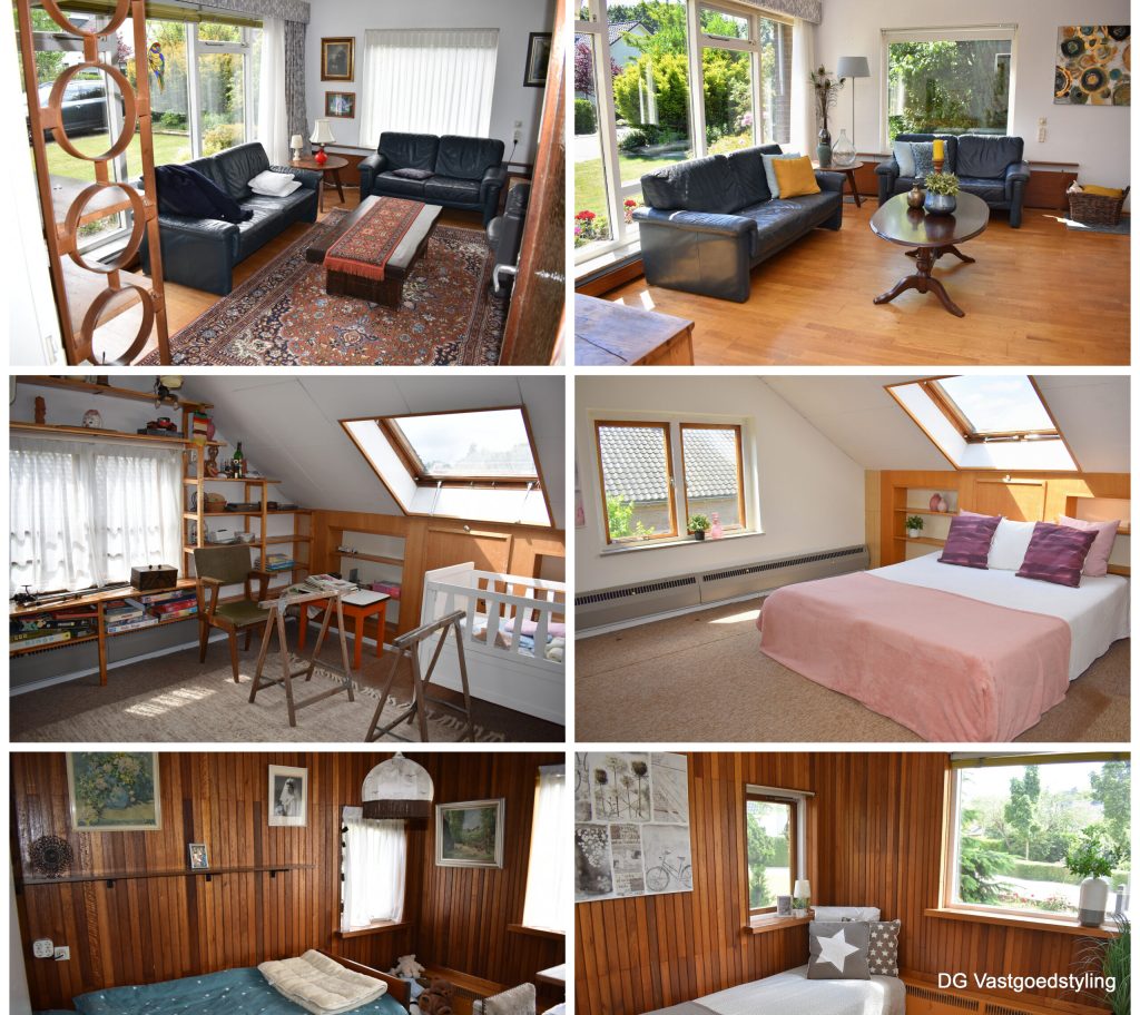 Het klopt, de woning is gedateerd. Maar ook dan kun je een mooie fotoreportage plaatsen op Funda. De eigenaresse begreep dat er zaken moesten worden opgeknapt, zoals het witten van de muren. Maar hier was geen budget voor en ook geen mogelijkheid om dit zelf aan te pakken. Wij hebben er dus rekening mee gehouden dat de nieuwe bewoners zelf alle renovatiewerkzaamheden zullen moeten gaan doen. Daarom laten wij in onze styling vooral alle ruimtes en hun functie zien. Een aantal slaapkamers werd niet meer gebruikt. Wij hebben hier een plusstyling toegevoegd en een klein meubelverhuur ingezet om de slaapkamers die niet meer gebruikt worden presentatie-klaar te houden voor de bezichtigingen.