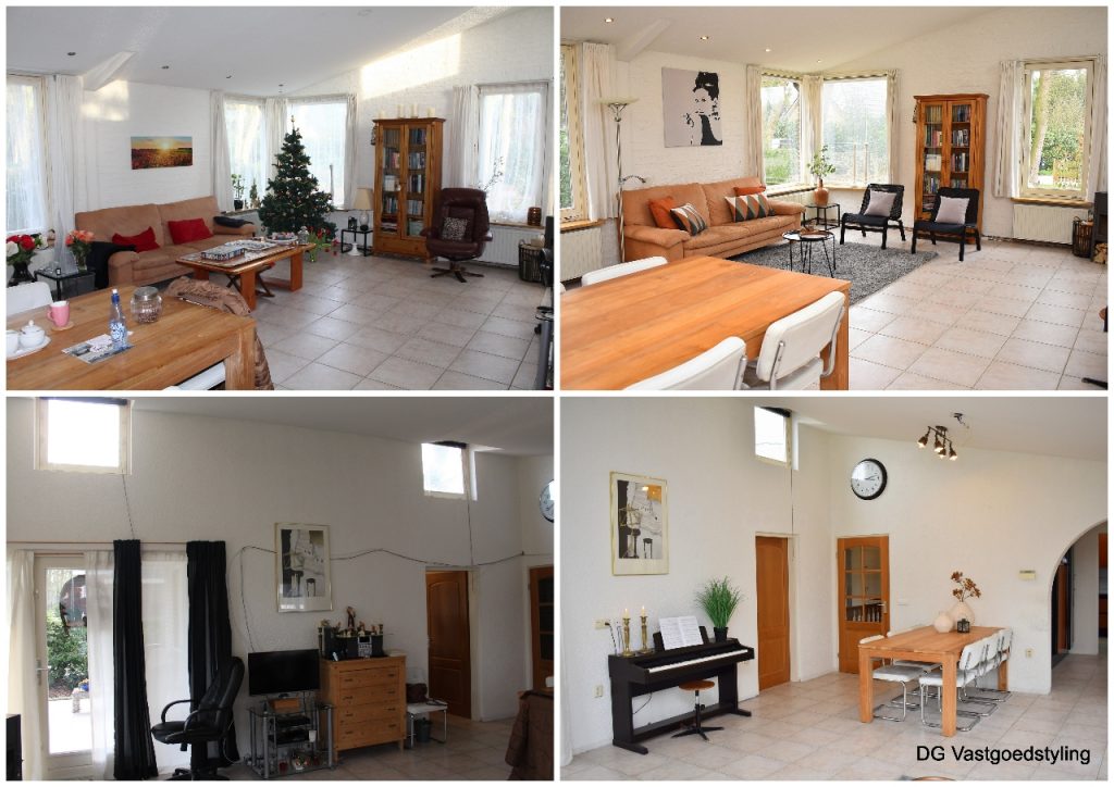 Deze woning is erg gedateerd en moet grondig worden aan gepakt door de nieuwe bewoners. Ze weten bij deze woning dat er het een en ander moet gebeuren zoals kozijnen, isolatie en dubbelglas en eventueel een uitbouw. Omdat er is gekozen voor een plusstyling hebben wij de (gedateerde) meubels die aanwezig waren gebruikt en daaraan onze accessoires toegevoegd om een compleet plaatje te komen.