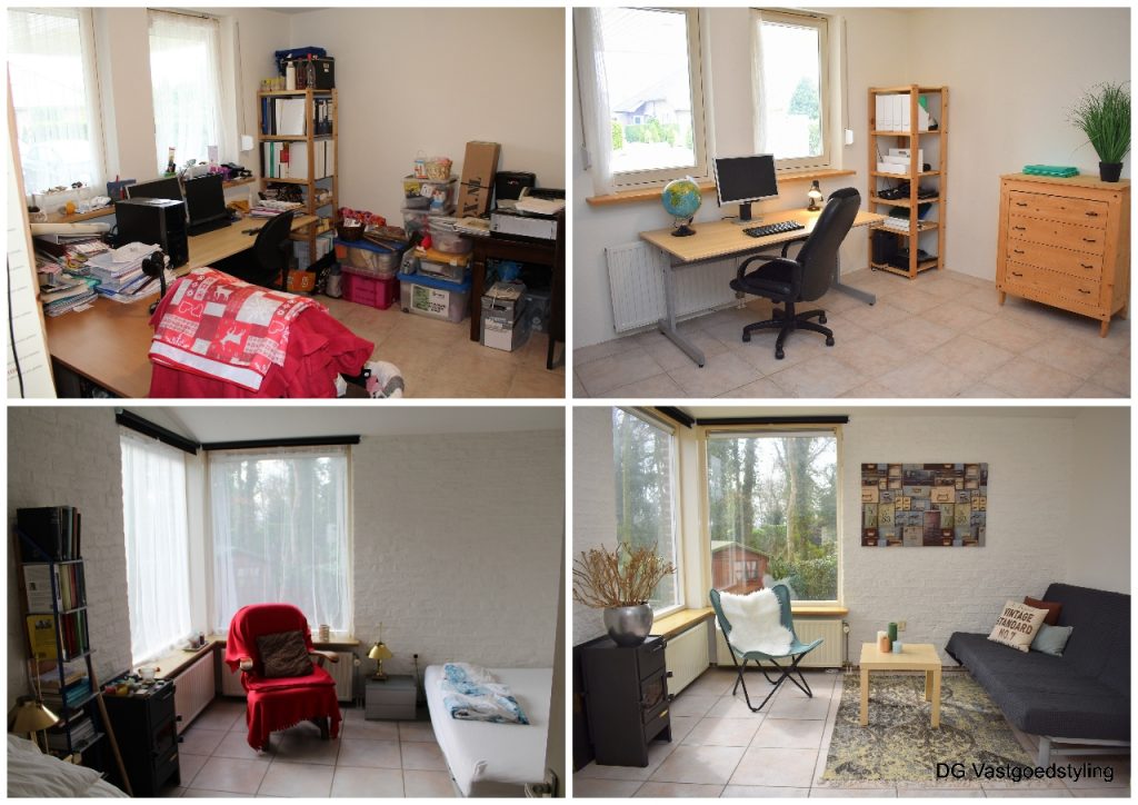 Aan de hand van een opruimlijst hebben de verkopers zelf ook een duidelijke rol gekregen. Daarnaast moeten onafgemaakte klussen gerealiseerd worden voordat DG aan de slag kon gaan. Door spullen op te ruimen en te verzetten, kon iedere ruimte de uitstraling krijgen die het nodig had. Met name het laten zien welke functie de ruimte had was heel belangrijk.